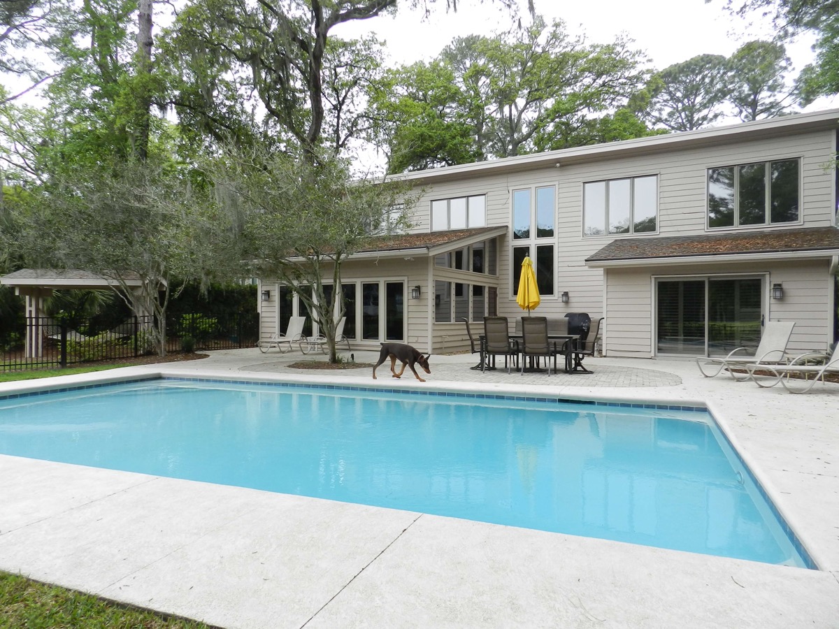 We just got back from a great week at 11 South Live Oak! We are a family of 6, older kids in 20's and 2 Choc labs. The house was perfect for us . It is big in the areas that are most used and very comfortable. The kitchen is completely outfitted which was appreciated, as we ate both in and out. The pool was our most favorite part by far!! Water was perfect temperature and very clean. Pool deck was large and great for happy hours, card games, grilling and night swimming! Location was 8 min to beach, easy walk. Carol was great to work with and very helpful even though we have been going to HH for 15 yrs. We will be back!!