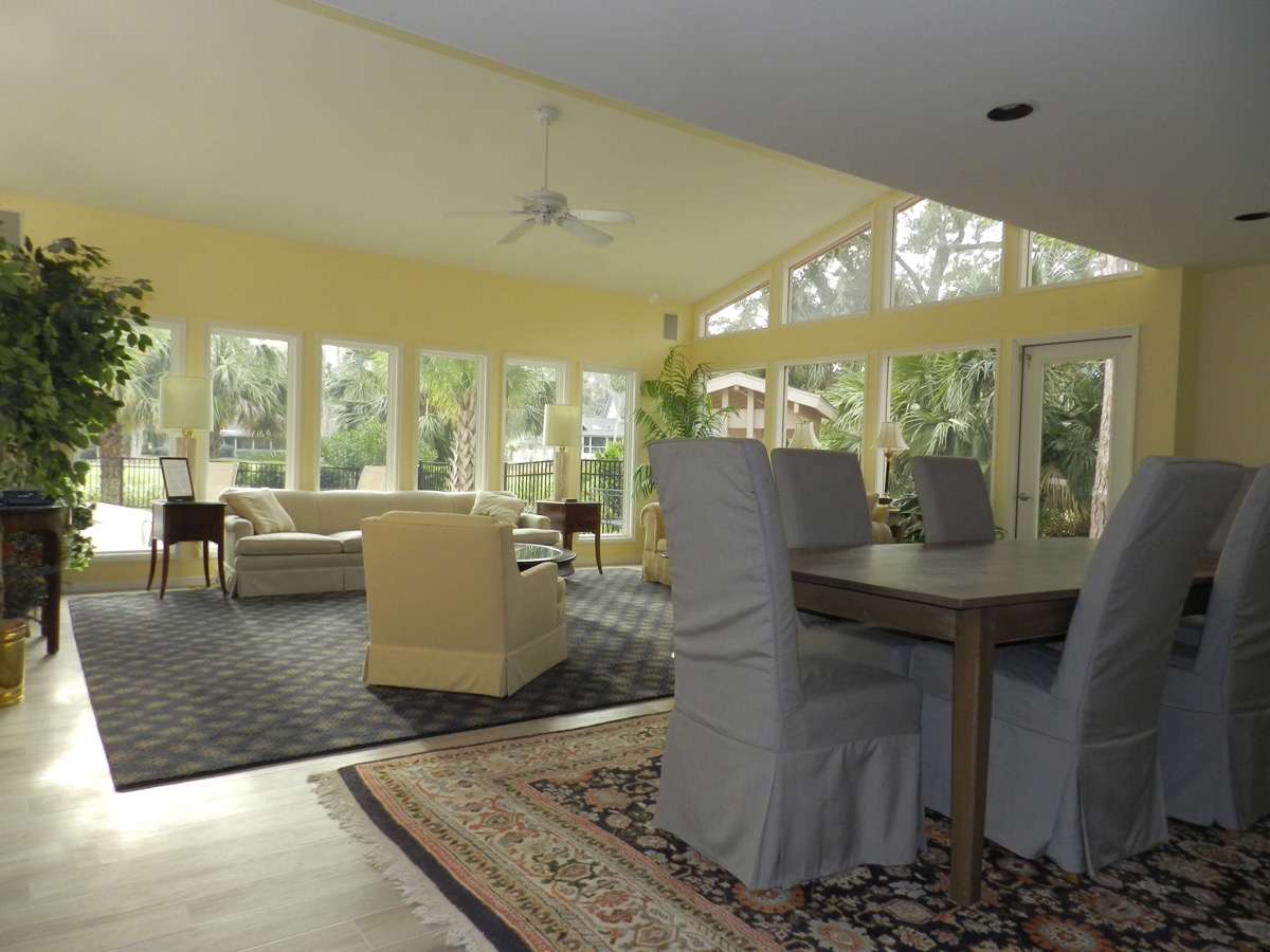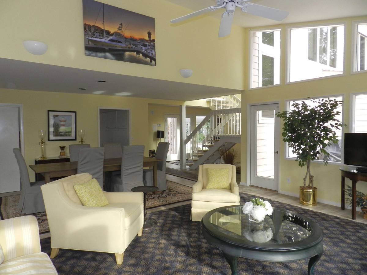 This was by far the most beautiful rental we have ever rented in Hilton Head. And it is even dog friendly too! My two chocolate labs enjoyed the house as much as we did. The house is beautiful and pristine. We had three couples and my teenage daughter in the house. The house is so big it is possible to get lost. There are two beautiful master bedrooms- one on the first floor and one on the second floor. The second floor is like its own separate living space. My husband and I were on the first floor. When we were up later than the rest of the group, the second floor couldn’t hear any noise. They didn’t even hear my dogs bark in the middle of the night. The kitchen is one of the most fully stocked kitchens I have ever seen. Everything you could possible need to cook a family dinner is at your disposal. The pool was beautiful, very relaxing, located right on a golf course. Carol and Gary were the most amazing people to work with. The wealth of information they provided was so helpful. We ate at three of the restaurants they recommended- Salty Dog, Red Fish and Michael Anthony’s. Great choices, excellent food, I would recommend them again. The walk to the beach is less than 8 minutes just as Carol promised. At Carol’s suggestion we walked ½ mile up the beach to the Sea Pines Beach Club and enjoyed mojitos at the bar. Thank Carol and Gary for sharing your beautiful home with us. All of enjoyed a relaxing, wonderful vacation week. I ever sensed that my two chocolate labs were sad to be home and had dreams about 11 South Live Oak. I would highly recommend this rental to anyone. You will not be disappointed.