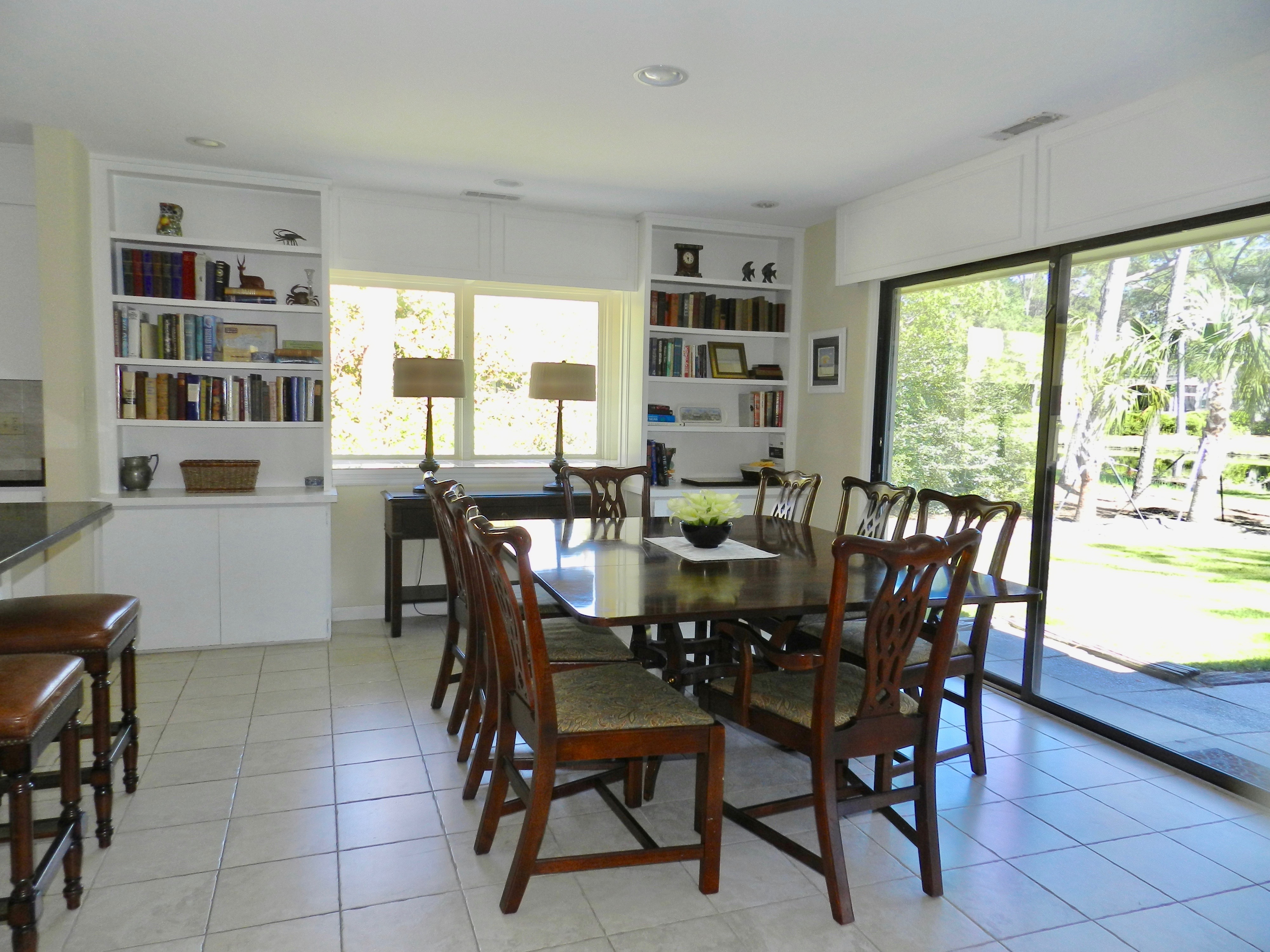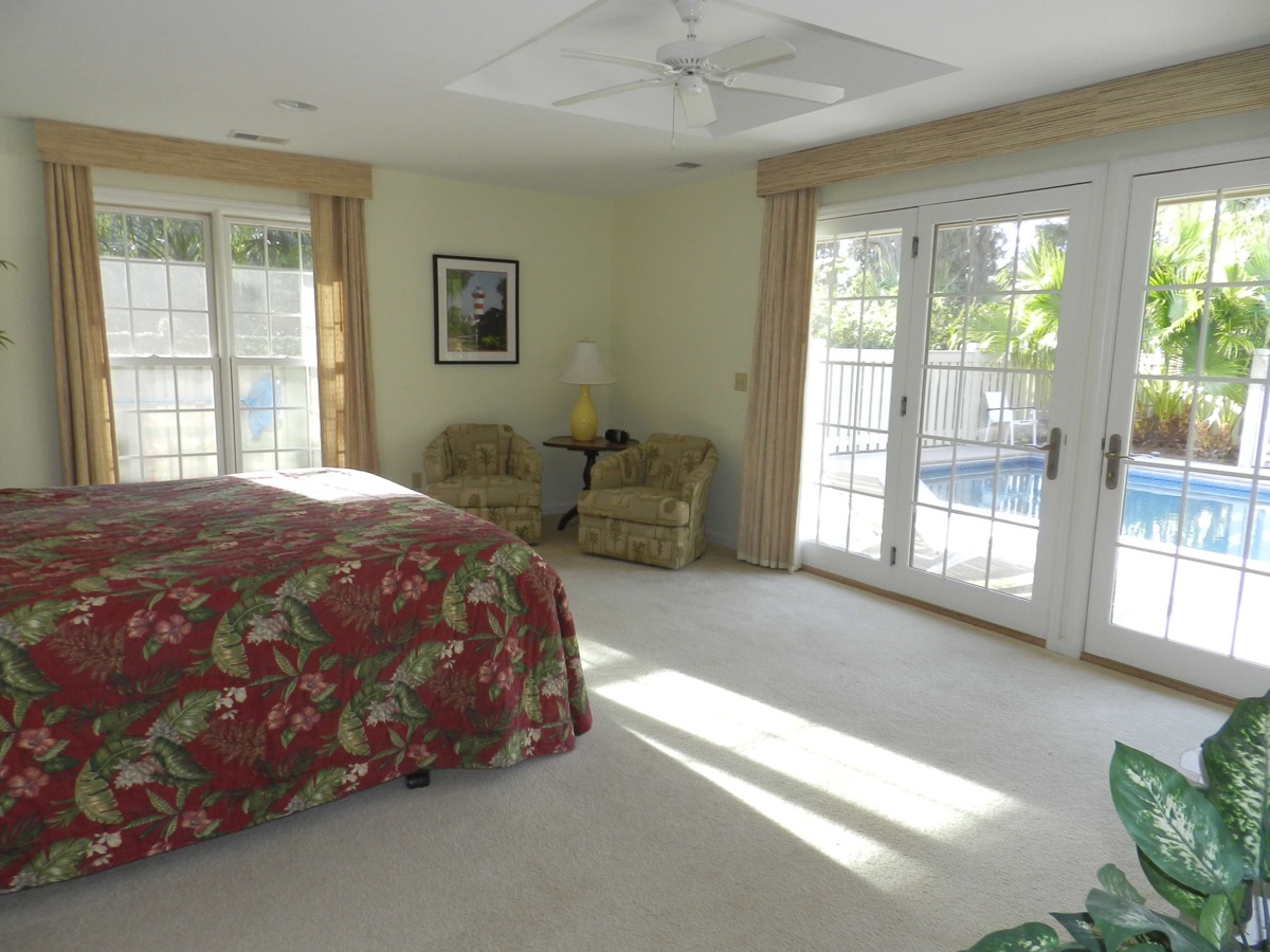 This was the perfect home for our first family vacation on Hilton Head Island. We had 7 adults, 3 grandchildren, and 1 dog but we never felt like we were cramped for space. The open kitchen, dining and living area was so great for meals and socializing that we never really wanted to go out to eat. Everybody enjoyed the private pool area. There were plenty of chairs and lounges to relax and enjoy the sun. The patio area overlooking the lagoon was a great place to relax in the evening and watch the egrets roosting on Egret Island. The home is well located and just a short distance to the beach, Harbour Town and South Beach. I really enjoyed taking our dog for sunrise walks on the beach. The beaches are beautiful and not crowded at all. We definitely want to come again!