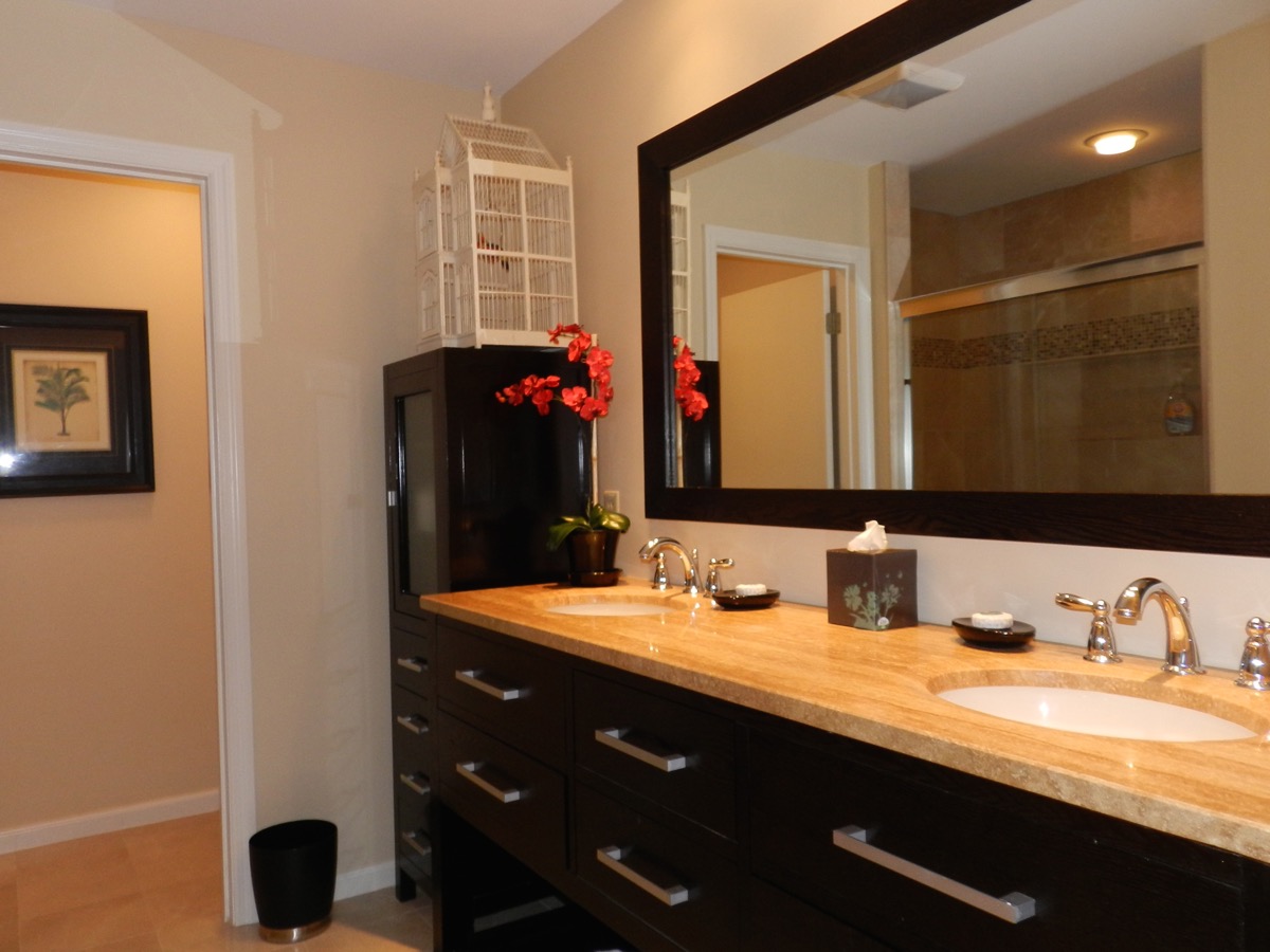 This is a beautifully renovated and comfortably furnished, 3200 square foot home. The Italian tiled Great Room has a wall of glass with a clear view over the large lawn, down to the lagoon & egret island. It enables anyone in the kitchen area to be part of the group. The Weber gas grill is located just outside on the patio, close to the kitchen. The dining area inside seats 8, plus 4 bar stools around the counter. On the patio, there are two dining areas. The four generously sized bedrooms, are located to offer privacy for each, and each enjoy their own bathroom.
