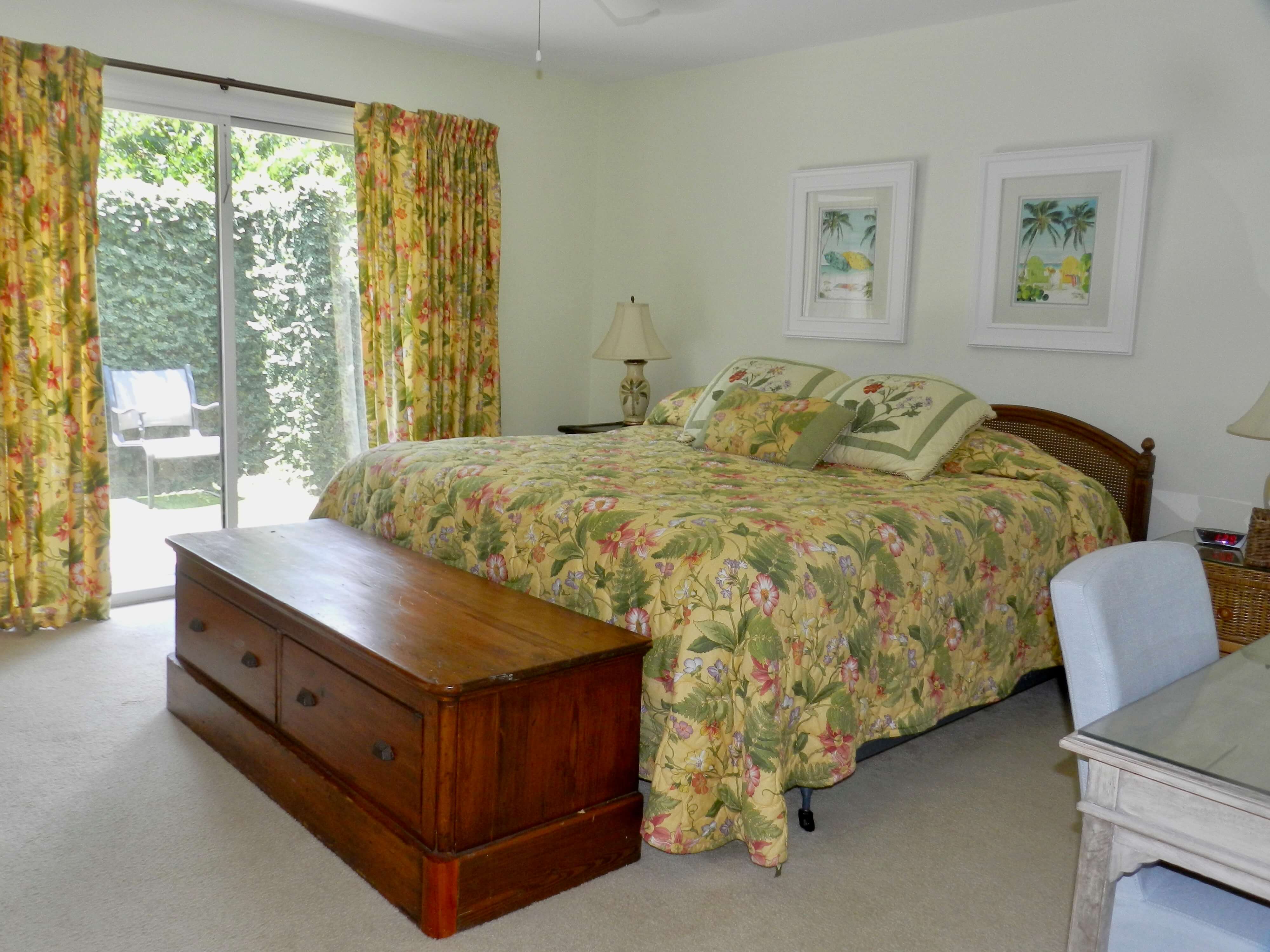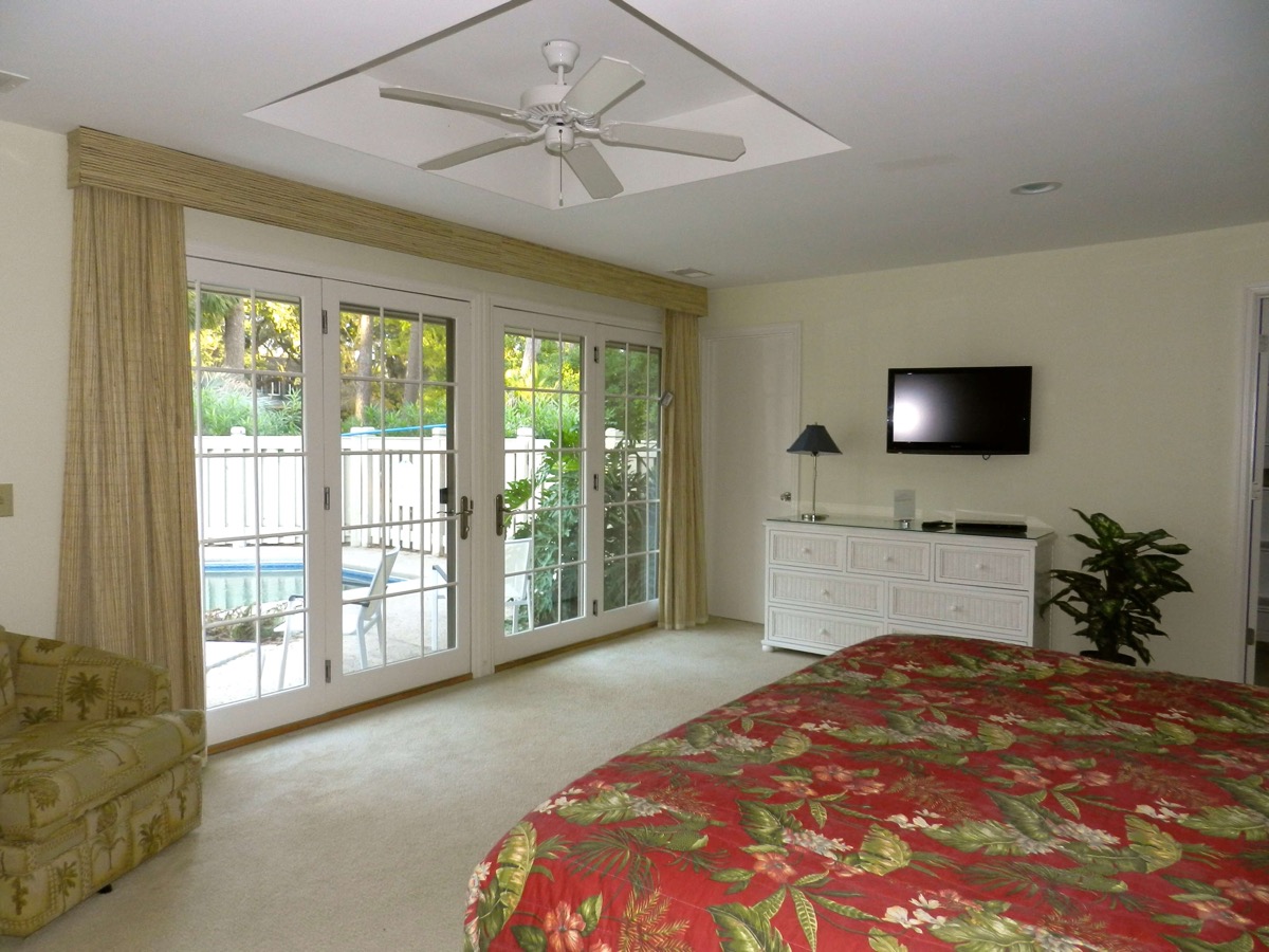 The Master Bedroom has 12 feet of French doors leading into the courtyard pool area. A second bedroom also opens up into this area.